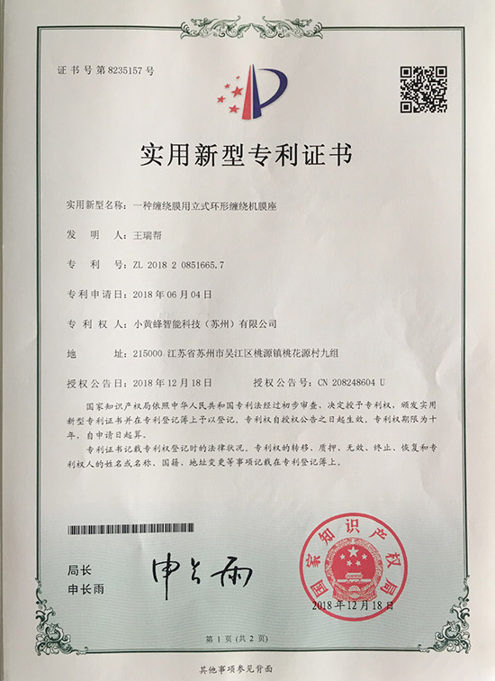 您的位置: 網(wǎng)站首頁 > 榮譽(yù)證書 > 小黃蜂-一種纏繞膜用于立式環(huán)形纏繞機(jī)膜座